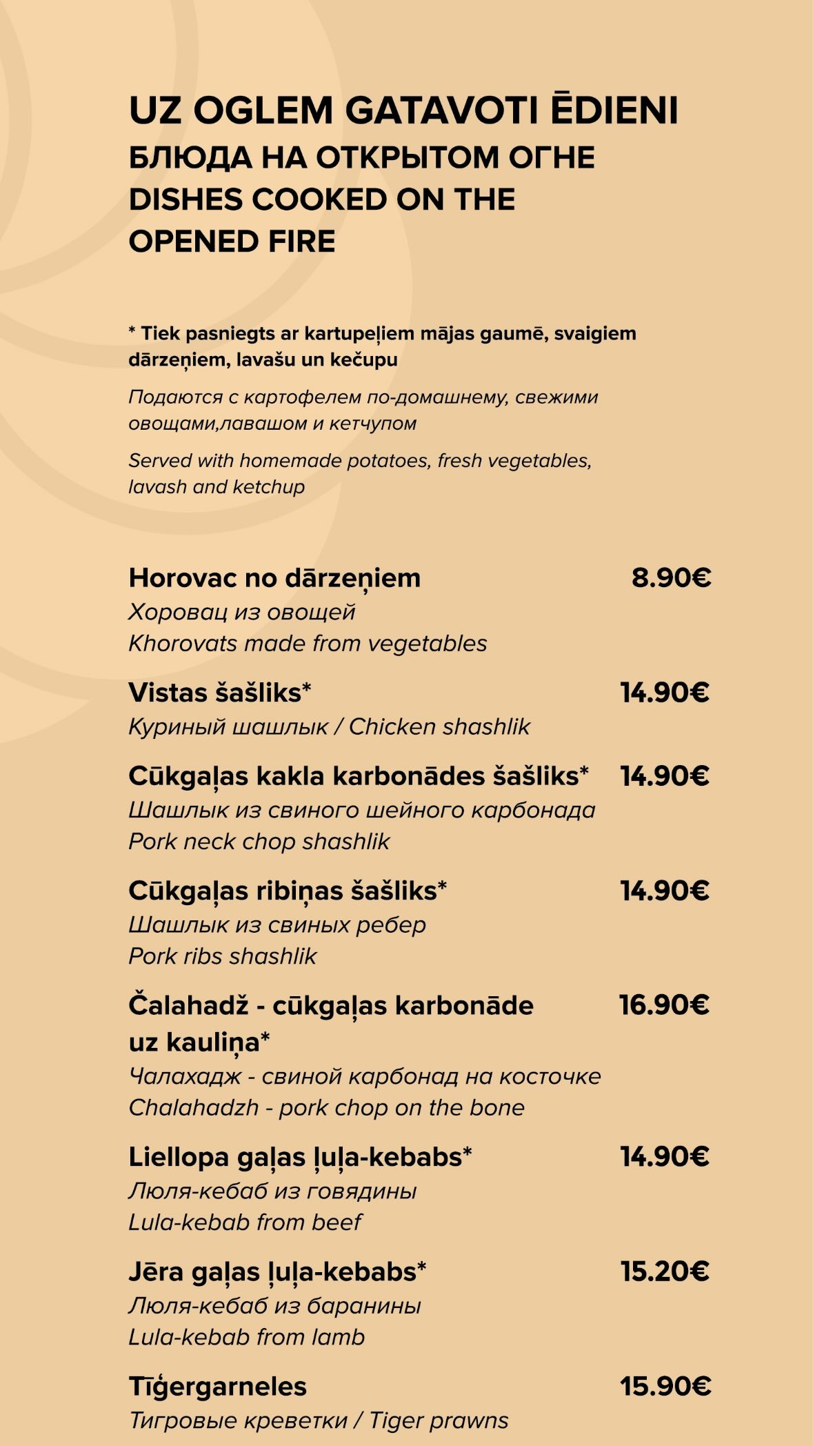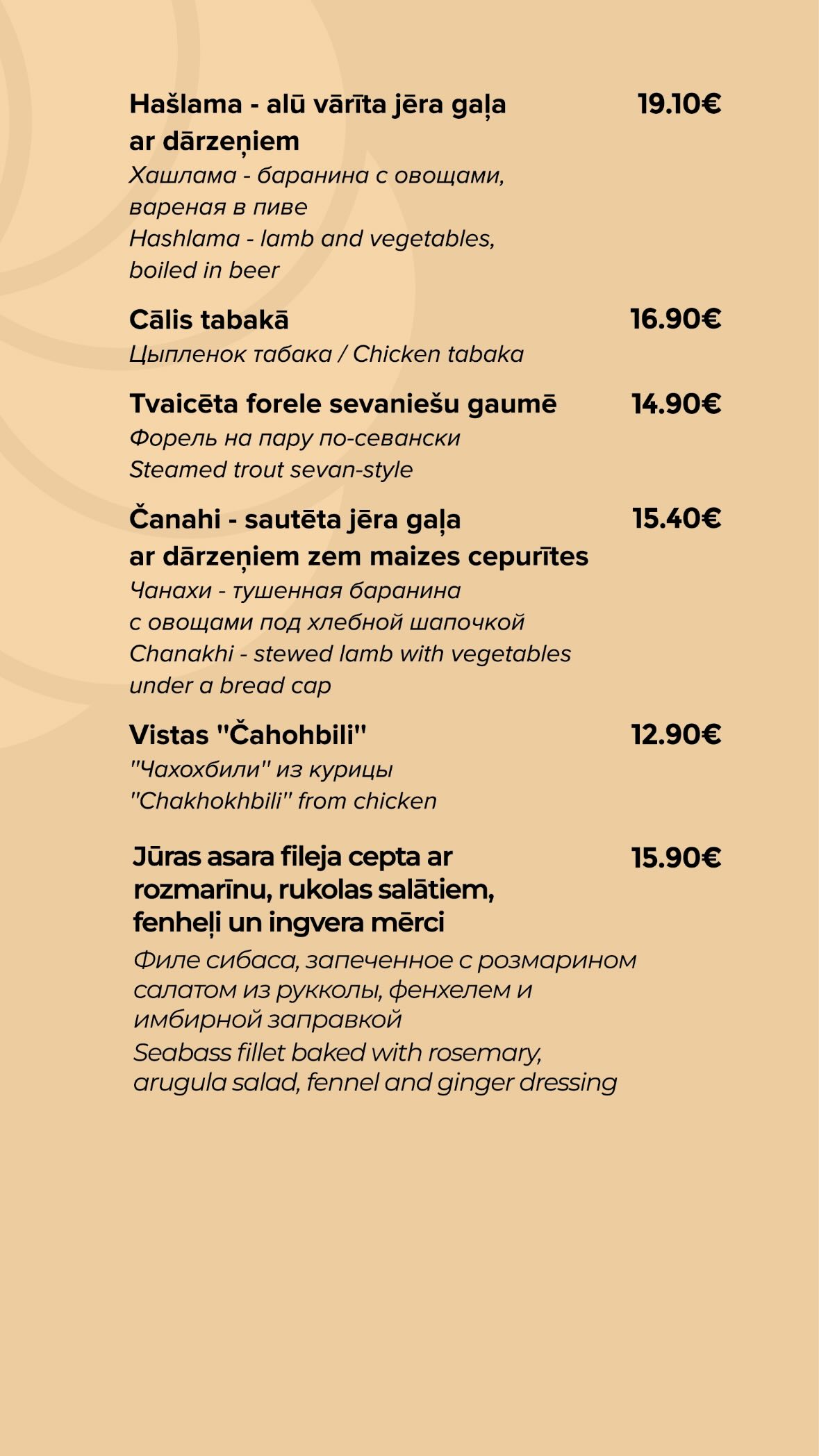 Autentiska armēņu ēdienkarte. Mājīga atmosfēra pie jūras.